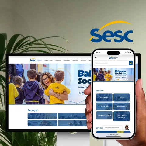 Portal responsivo projetado para o Sesc SC, sistema educacional profissionalizante.