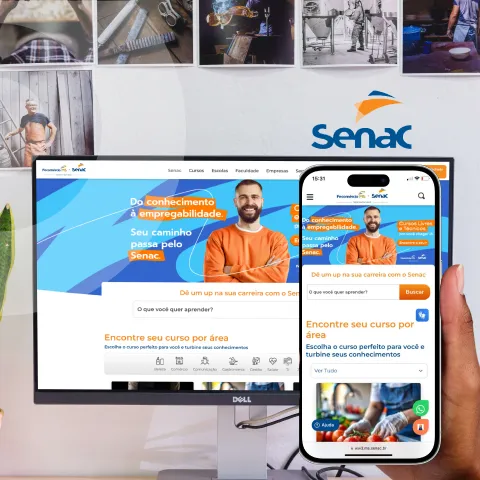 Portal responsivo projetado para o Senac MS, sistema educacional profissionalizante.