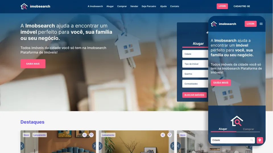 Portal responsivo projetado para a Imobsearch Plataforma de Imóveis.