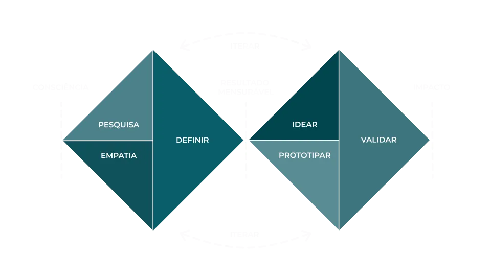 Utilizamos o framework Double Diamond como referência para guiar nosso processo de trabalho.