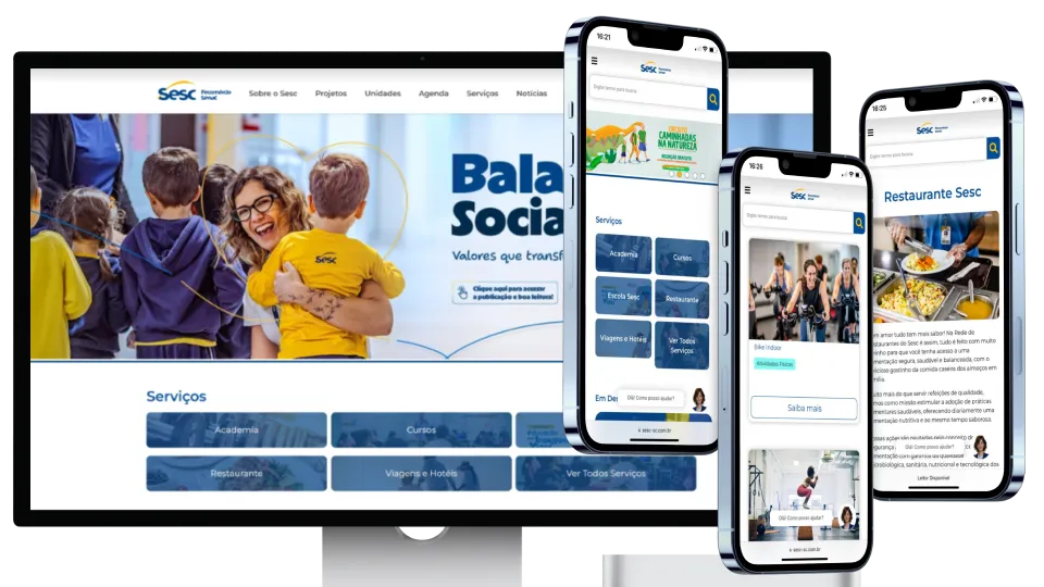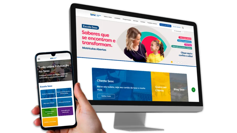 Portal responsivo projetado para o Sesc SC, sistema educacional profissionalizante.