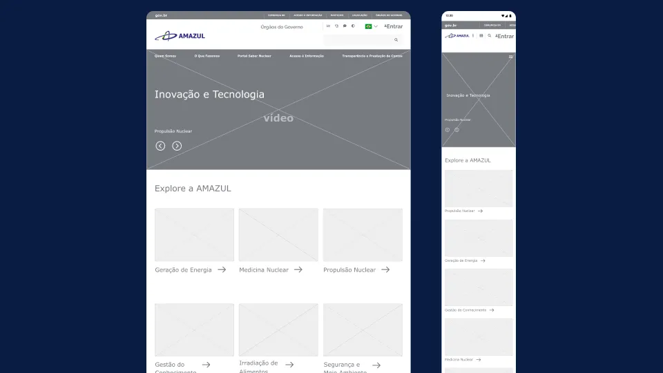 Portal responsivo projetado e desenvolvido para a AMAZUL, empresa vinculada ao Ministério da Defesa.